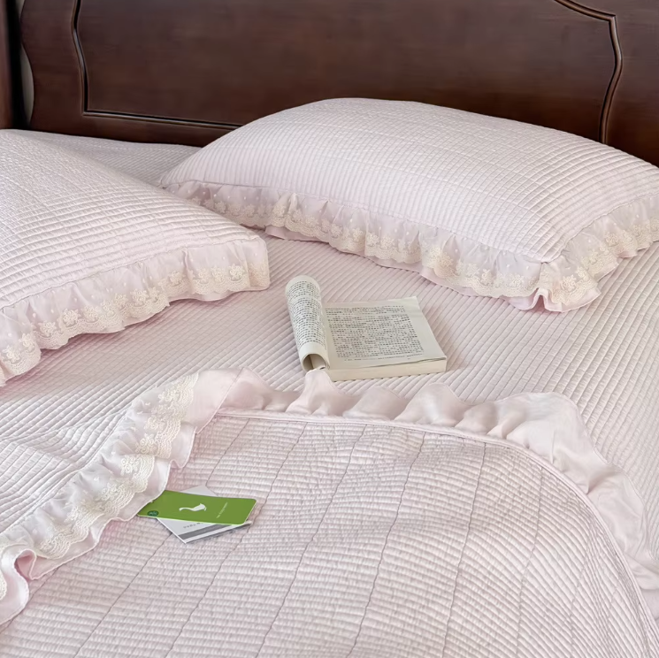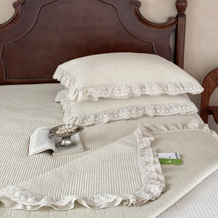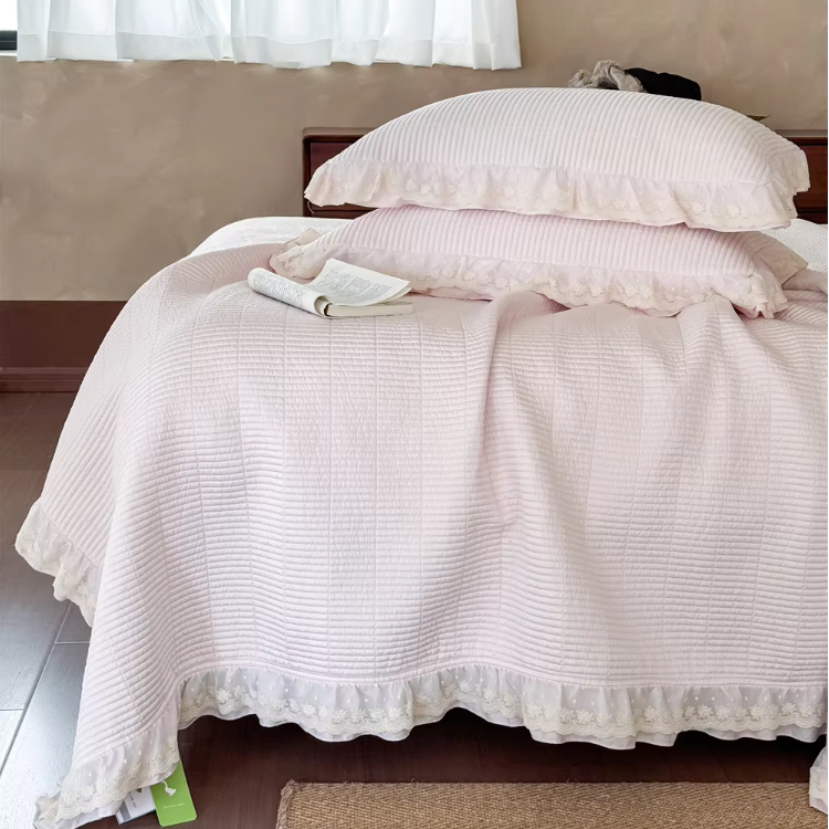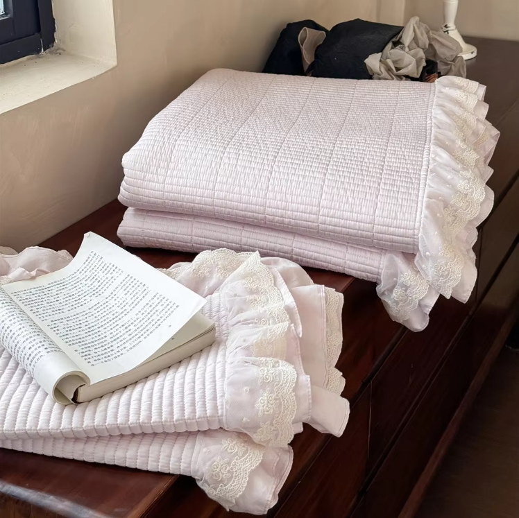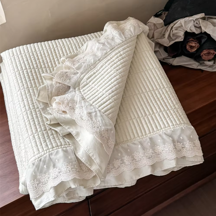 Bedruckte Steppdecke mit Spitzenstoff